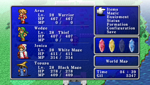 Hub du jeu Final Fantasy I