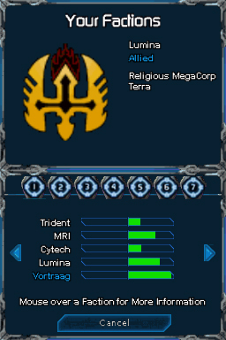 Hub du jeu Puzzle Quest: Galactrix