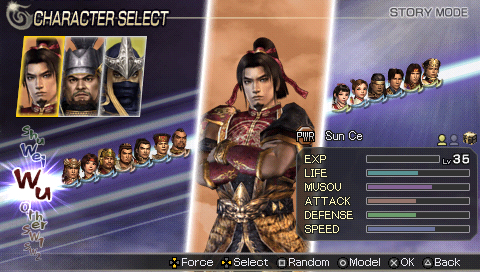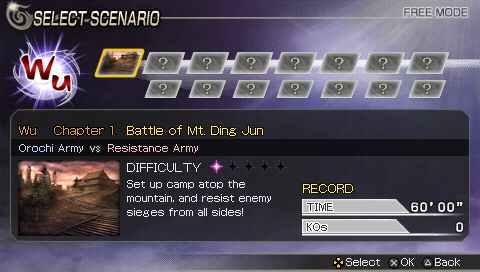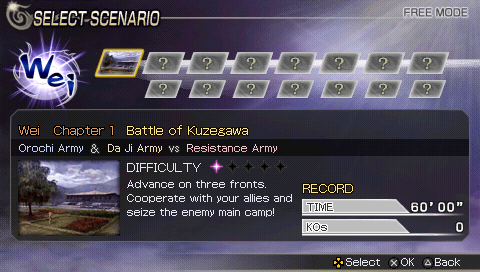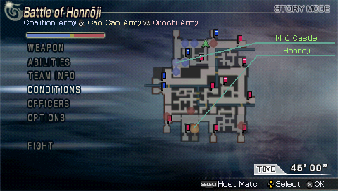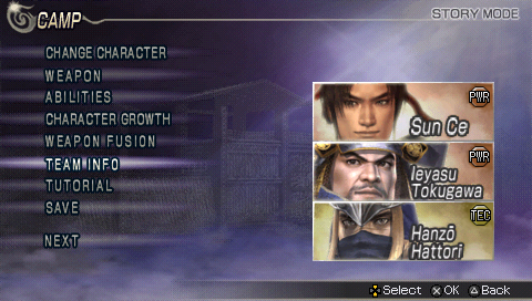 Hub du jeu Warriors Orochi