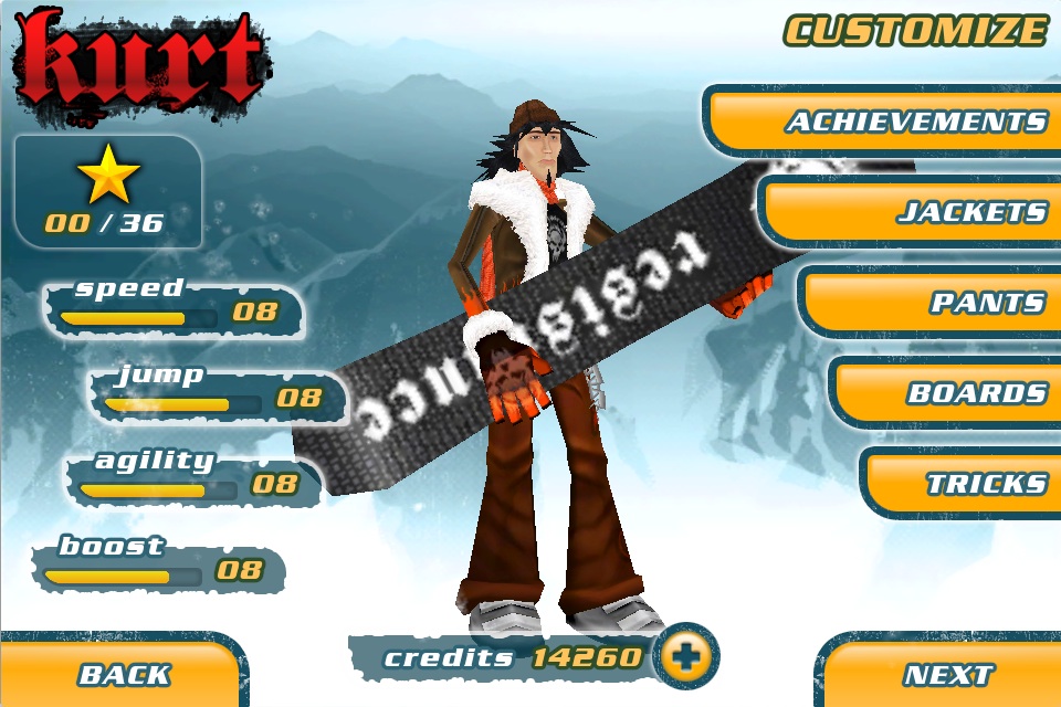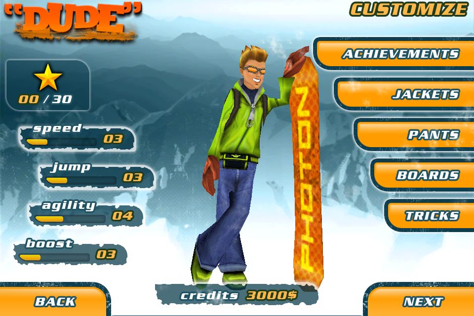 Hub du jeu Snowboard Hero