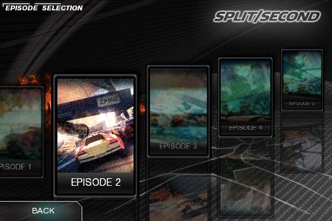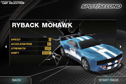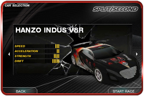Hub du jeu Split/Second