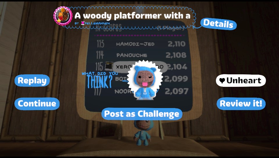 Hub du jeu LittleBigPlanet PS Vita