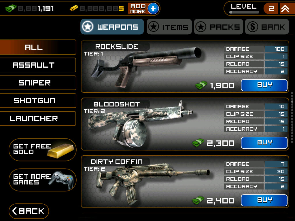 Hub du jeu Frontline Commando