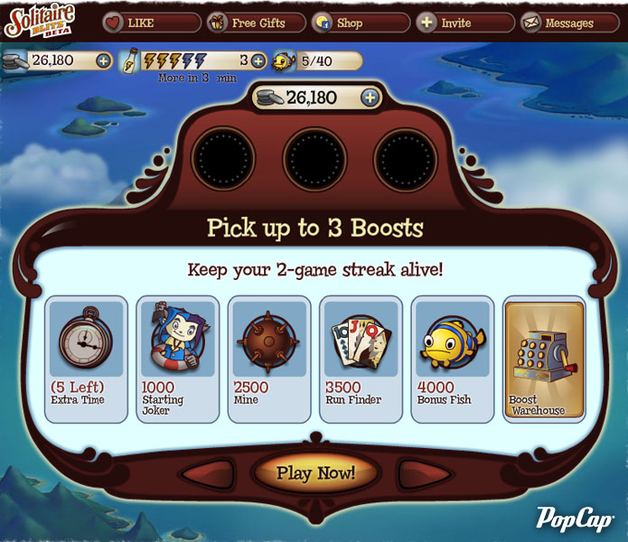 Hub du jeu Solitaire Blitz