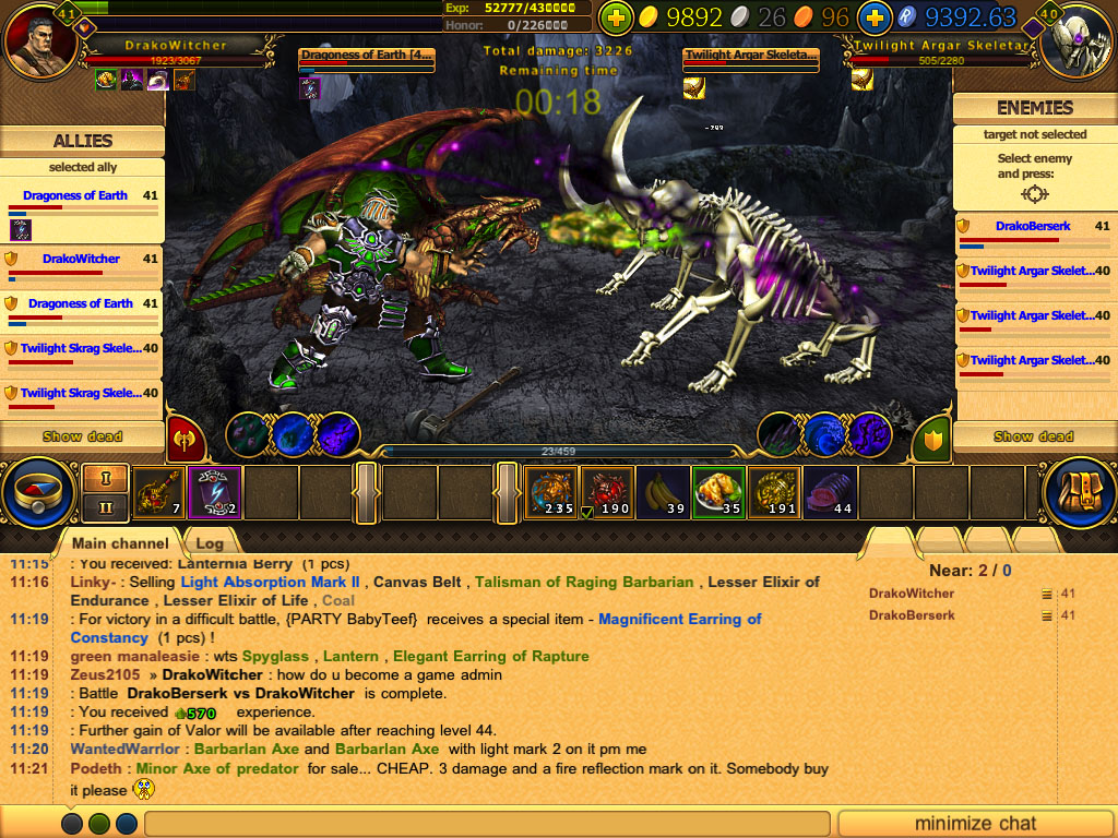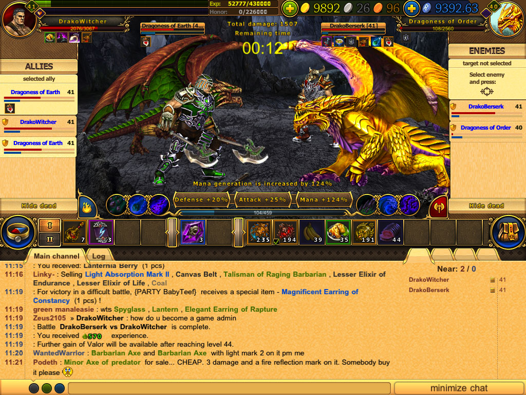 Hub du jeu Dragon Eternity