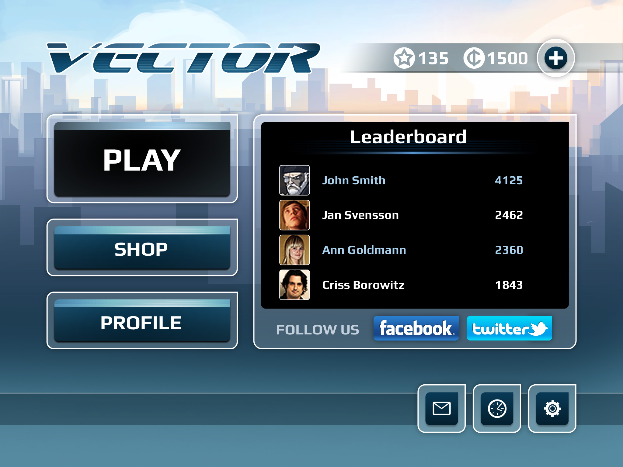 Hub du jeu Vector Full: course de parkour