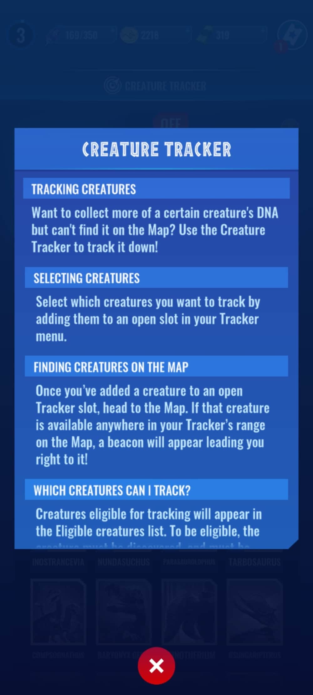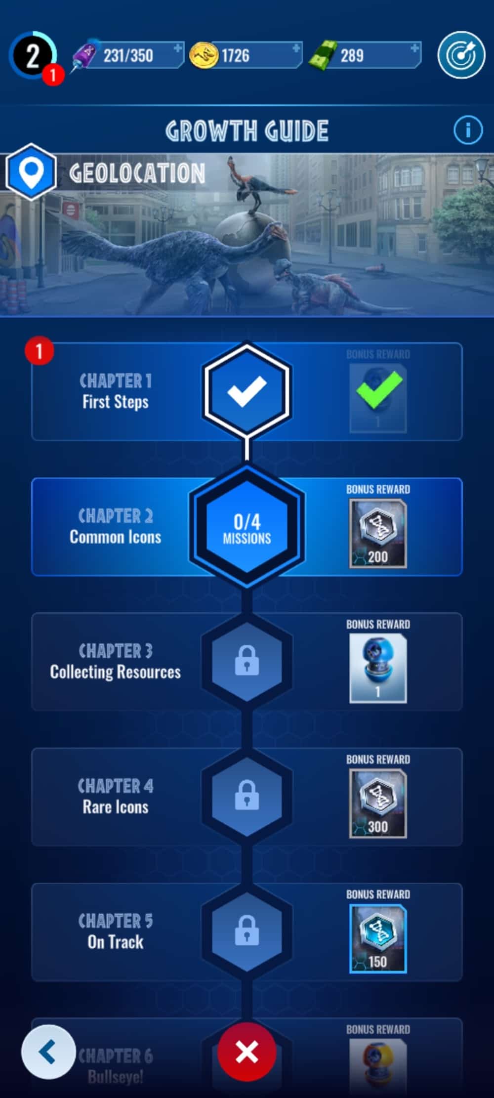 Hub du jeu Jurassic World Alive